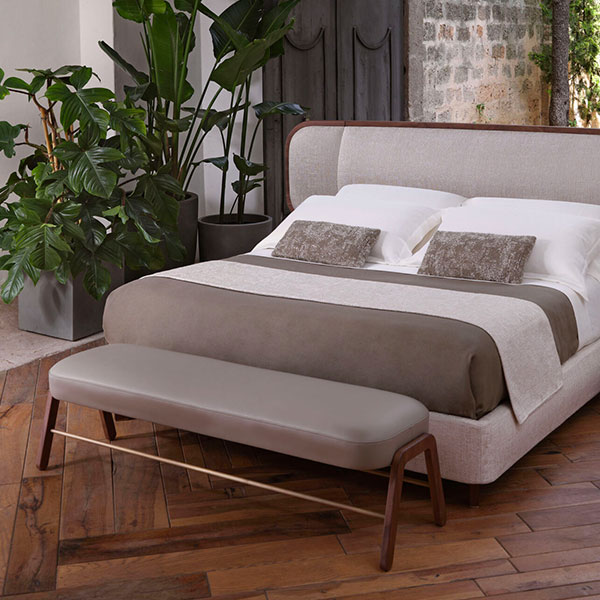 A great addition in front of the bed, crafted from wood and a rounded comfortable seat. By Conte Casa.